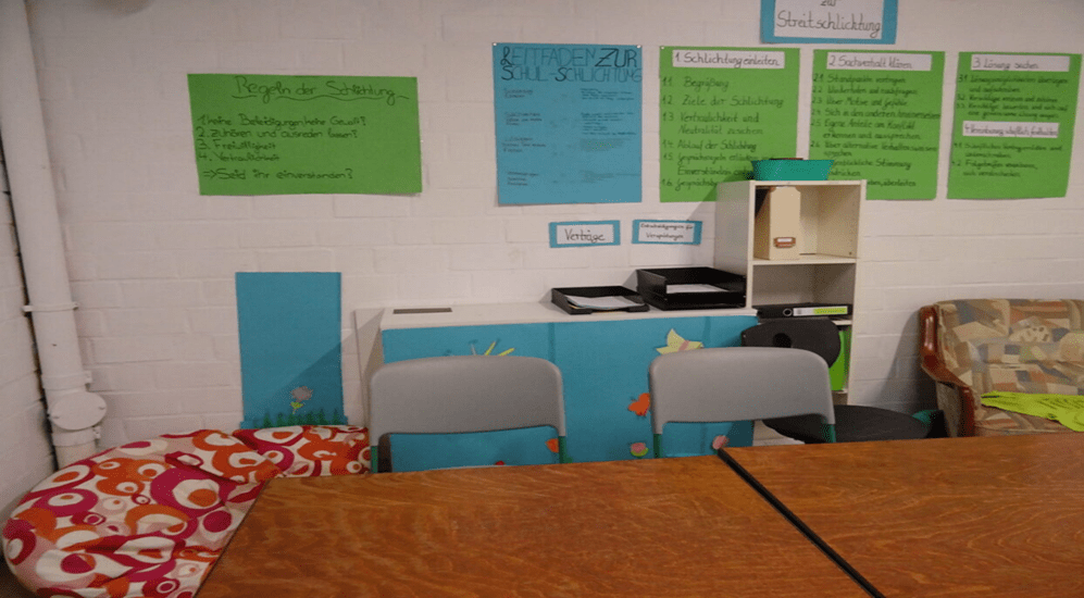 So sieht der Streitschlichterraum aus. Da kann man hingehen, wenn man einen streit hat denn man klären möchten.