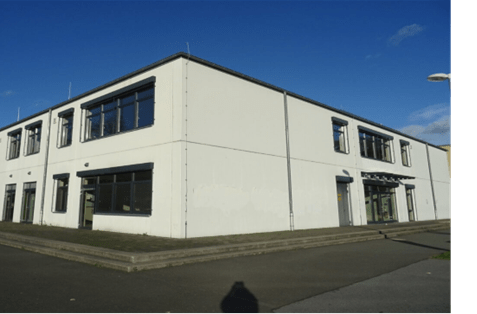 Dies ist unser Neubau, da haben wir Naturwissenschaft (NW), Informatik und Kochen.
