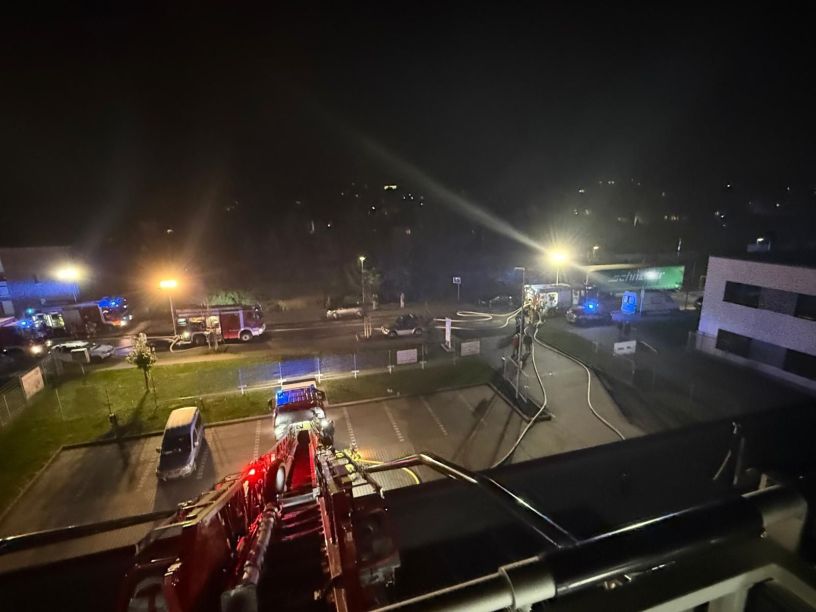Am Montagabend wurde die Feuerwehr Lohmar zu einem Brand in die Raiffeisenstraße alarmiert. Um ca. 18:30 bekam der Geschäftsfüher die Brandmeldung auf sein Handy, daraufhin alarmierte der die Freiwillige Feuerwehr der Stadt Lohmar. Bereits auf der Anfahrt konnte eine große schwarze Rauchwolke festgestellt werden. Nach ersten Erkenntnissen brannte eine Maschine in einer Kunststofffabrik. Zur Unterstützung wurde der LUF (Lösch-Unterstützungs-Fahrzeug) dazu gerufen. Es waren ca. 20 Feuerwehr- und Rettungsdienstfahrzeuge im Einsatz. Die Feuerwehren Lohmar & Siegburg waren mit 83 Einsatzkräften im Einsatz.