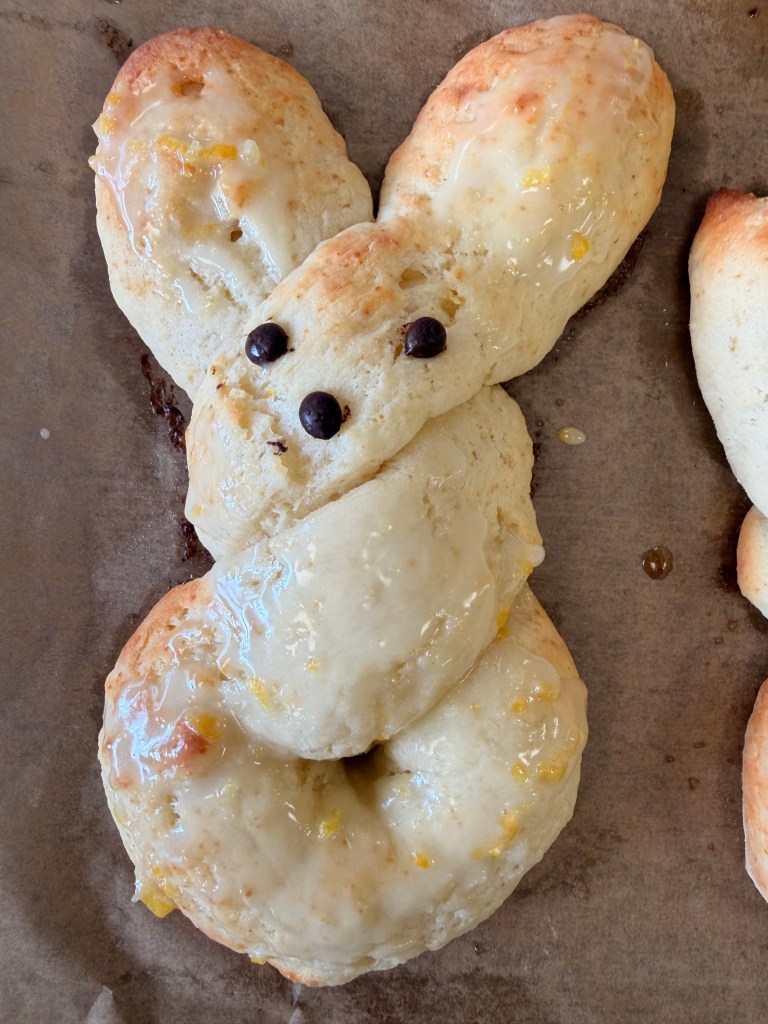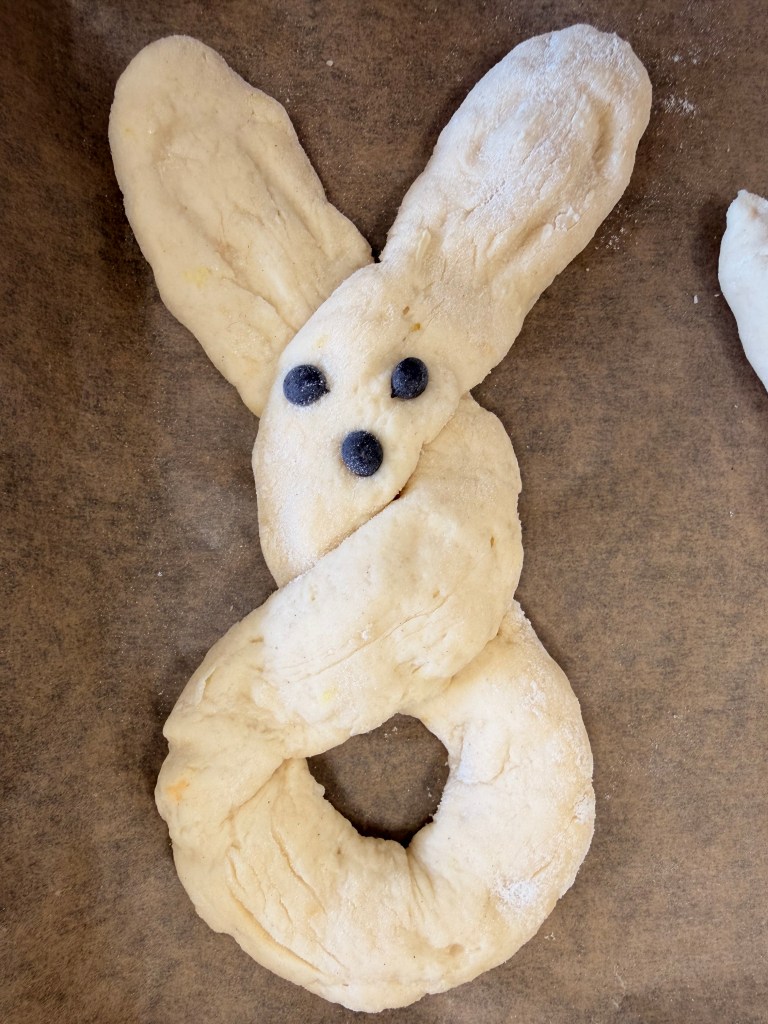 - Teig ausrollen und Hasen ausstechen oder formen.
